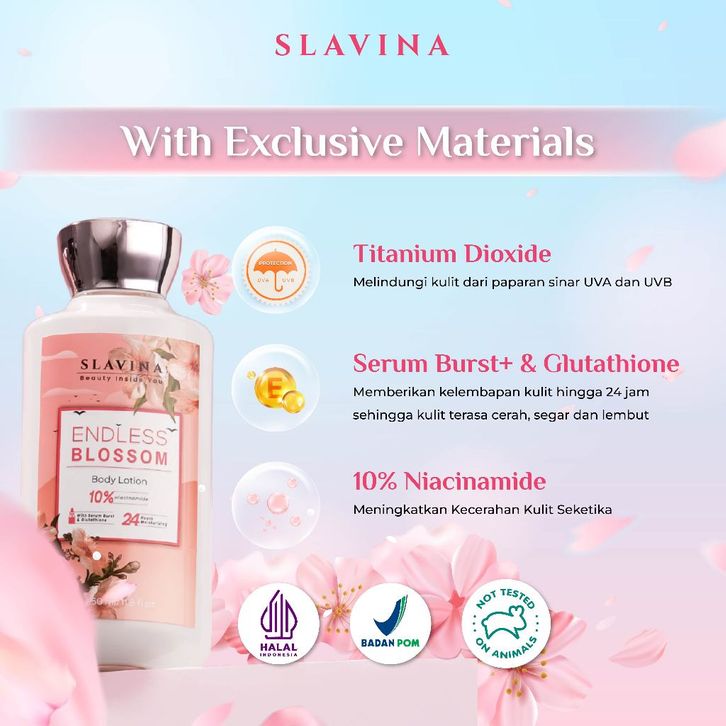 Terlaris Slavina Body Lotion Endless Blossom + Red Opium Romantic Series 10 Niacinamide with Serum Burst Glutathione Mo