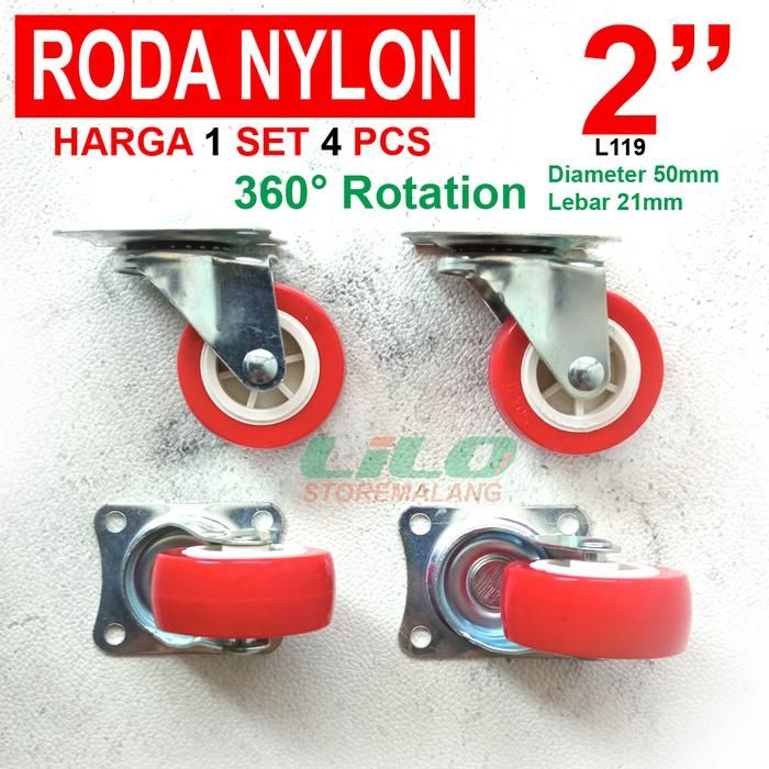 Ban Troli Roda Troly Roda Ban Caster Nylon Pu Pvc Troli Hidup 2 " Inch Set 4 Pcs L119