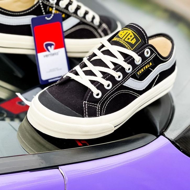 Ventela New Public Low Black Natural Sepatu Ventella Vantela Original 100 Sneakers Pria/Sepatu Sekolah Hitam