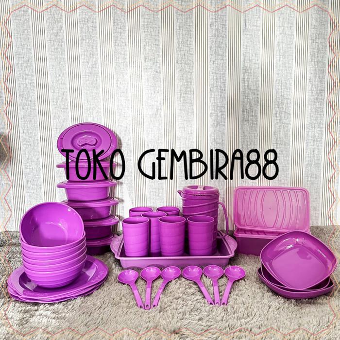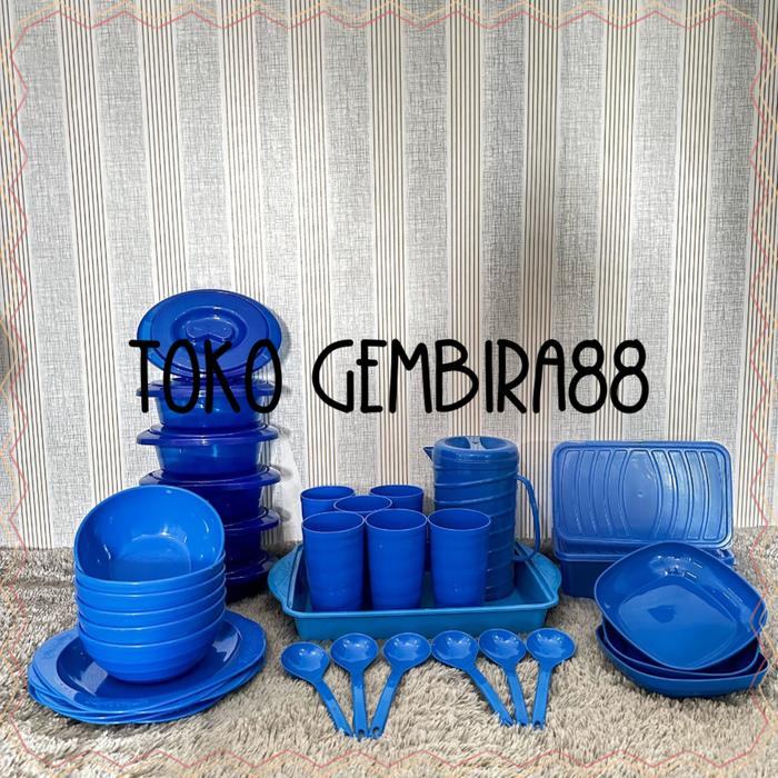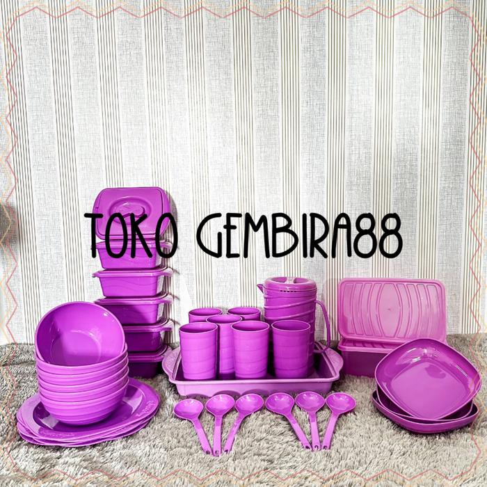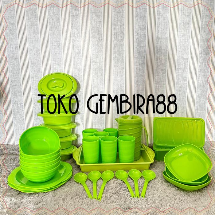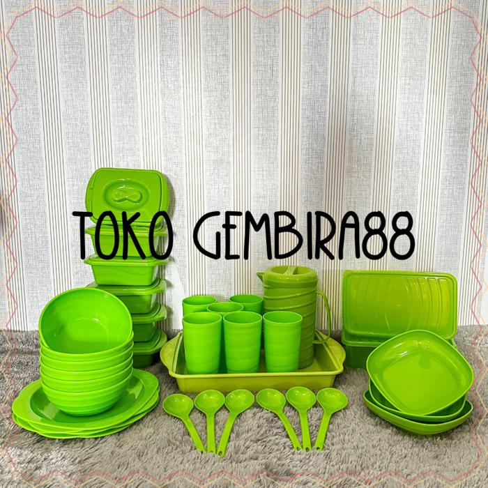 Promo Paket Family 37pcs lengkap / set lengkap peralatan makan / / piring / mangkok / prasmanan mini - HIJAU SEGI Keren