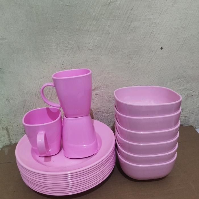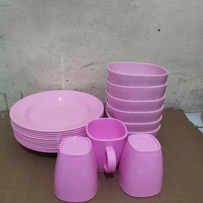 Terlaris 6 pcs/12 pcs paketan piring melamingelas melamin dan mangkok melamin - paketan 6 pcs Keren