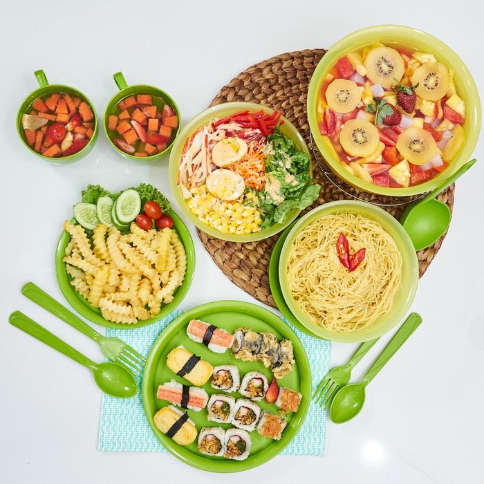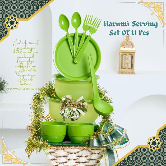 Terlaris [][TERMURAH] CPM Harumi Serving Prasmanan Wadah Saji Set of 11 Pcs Mangkok Piring - Green Keren