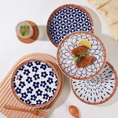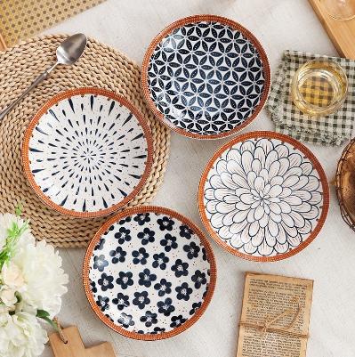 Terlaris HHS Piring Keramik New Motif Rattan Flowers Ukuran 20cm/pc - Rich Flowers Elegan