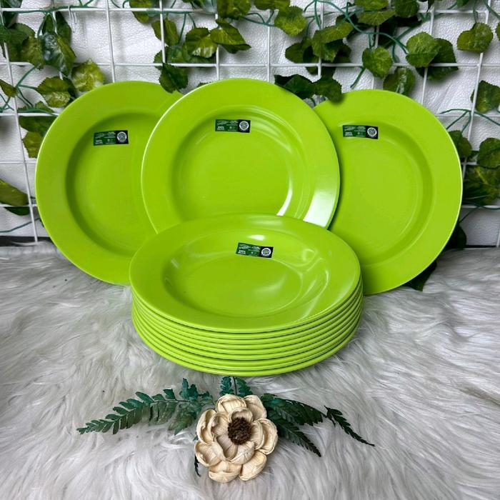 Terlaris Piring Makan Melamin g00lden Flying Fish Lusinan - Hijau Muda 6pcs Elegan
