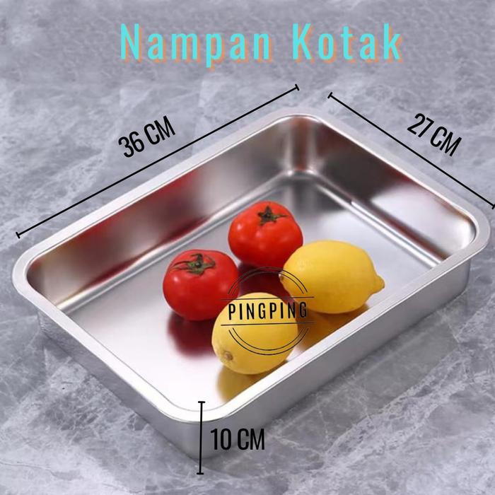 Promo PINGPING - Nampan Kotak Stainless / Nampan Sayuran / Nampan Makanan Food Grade - 40x30x10 Elegan