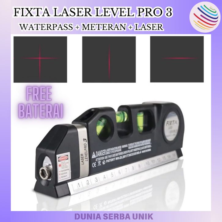 TERMURAH Fixta Laser Level Pro 3 Penggaris Waterpass Meteran Laser 250 Cm Pengukur Jarak Horizontal Vertikal ugidh