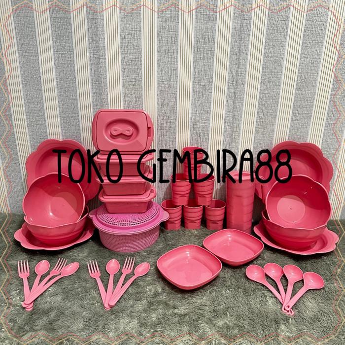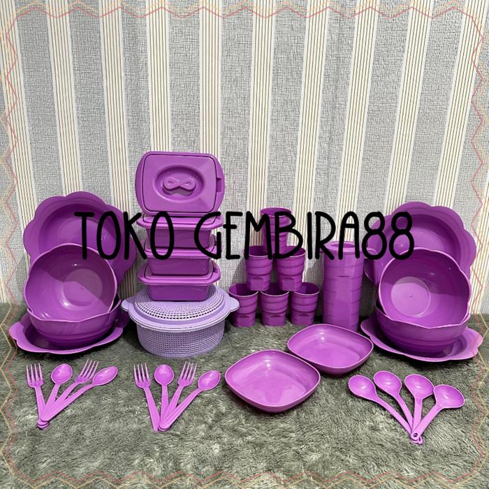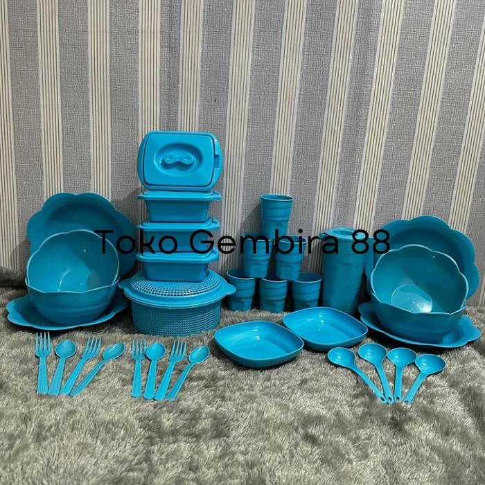Murah Kombo maut 34 / / lengkap / piring / mangkok / gelas ulir / sendok / garpu - Biru Elegan