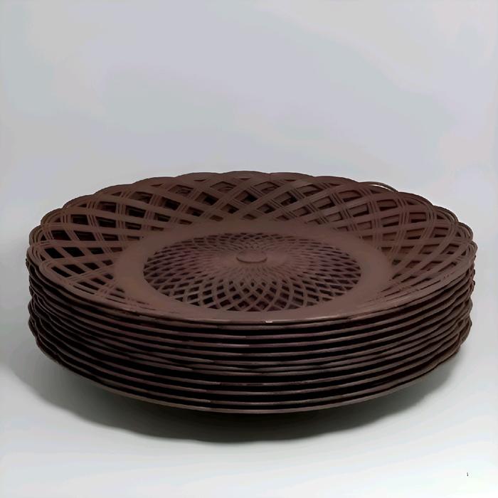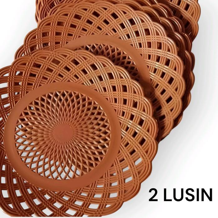 Murah promo!!piring rotan plastik 2 lusin bahan lentur tahan pecah serbaguna Kitchenware - coklat Keren