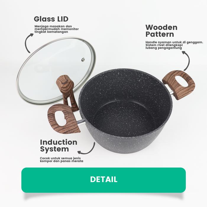Terlaris Panci Sop Panci Rebus 20-24cm Tutup Kaca Panci Soup Marble Kitchenware - PANCI 20CM Keren