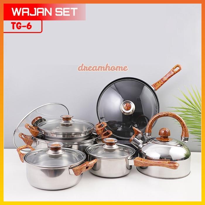 Promo Panci Teko Set Stainless Steel 12 Pcs Anti Lengket Panci Teflon Cookware Frypan Saucepan - YZG-1 Elegan