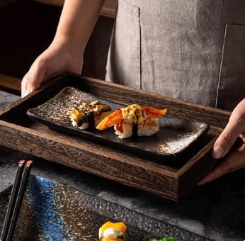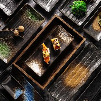 Murah BLACK Series - Japanese Ceramic Long Plate Piring Panjang Sushi Snack - Green Flakes 8.5 Inch Keren