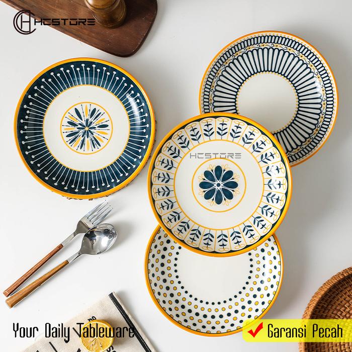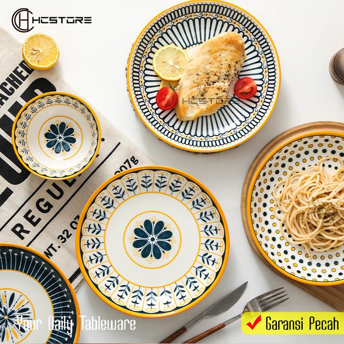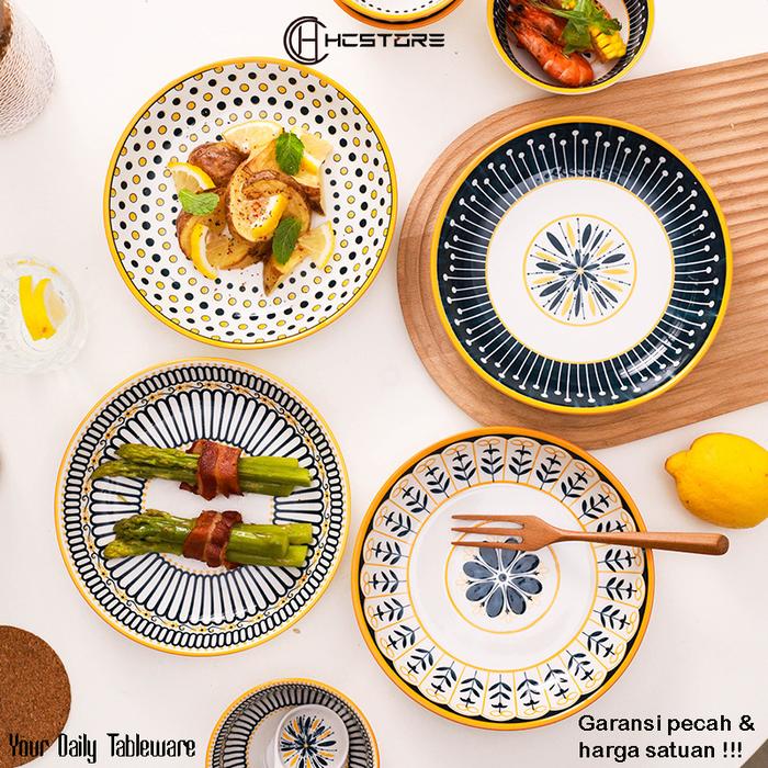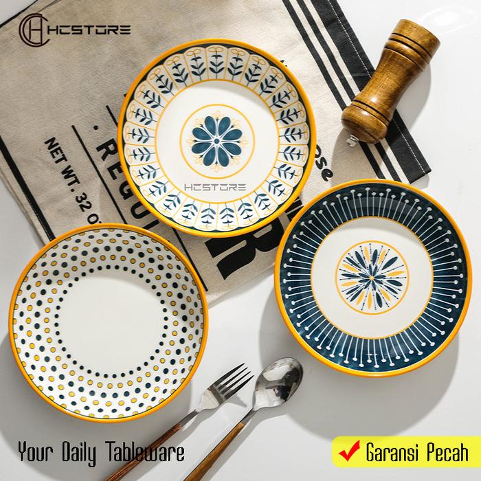 Murah HCSTORE PIRING MAKAN KERAMIK MODEL EROPA UKURAN 21CM Bunga Kitchenware - 8in Piring FloNav Keren
