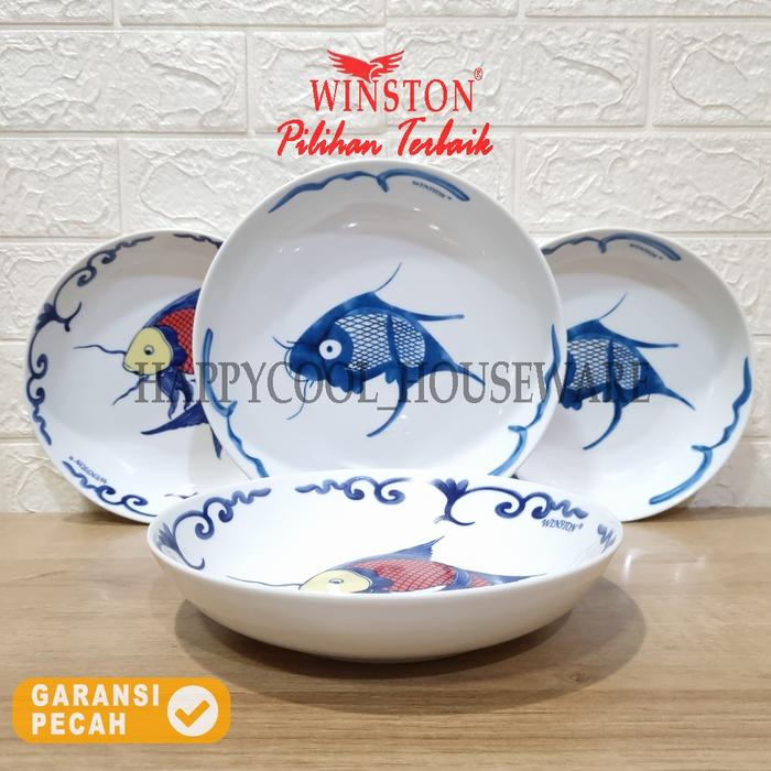 Promo WINSTON Piring Keramik 825IN & 925IN Ikan Lontar /Piring Buah /Piring Makan Soup Porcelain - 825 Inchi Biru Elegan