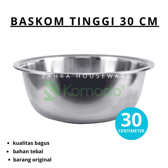 Promo Baskom 30 Cm KOMODO Baskom Adonan Sayur Buah Stainless Wadah Mangkok Besar - BASKOM TINGGI 30 CM Keren