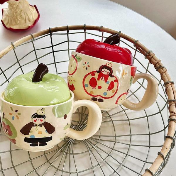 Terlaris Apple Mug with Lid Coffee Tea Milk Cup Girl Cup Boy / Mug Apel dengan Tutup Cute - Merah Elegan