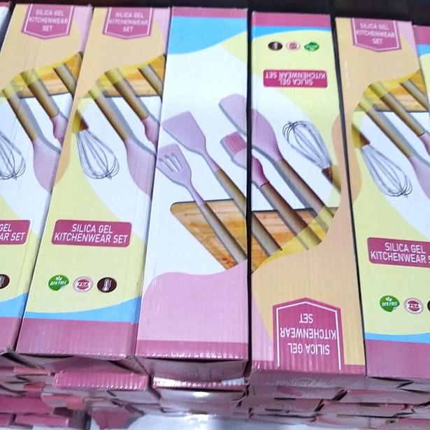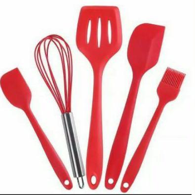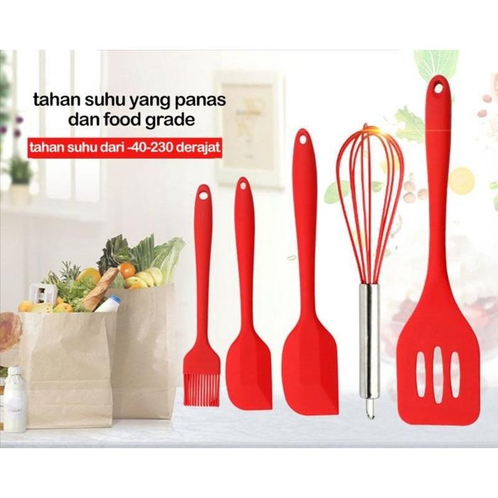 Terlaris Spatula 5 Set Silikon Silicone Kitchen Cooking 5in1 Set Alat Masak Silikon isi 5 Baking - merah Elegan