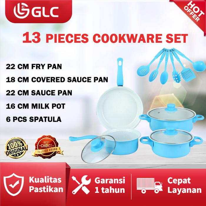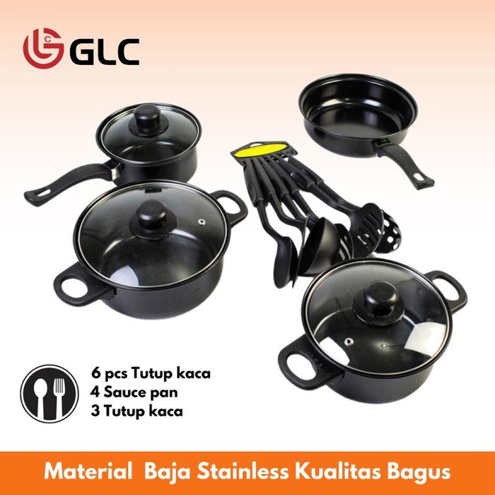 Promo GLC-Cookware Panci Set Wajan Penggorengan Spatula Set Isi 13Pcs 1 Set Frypan Saucepan - Black 13PCS Elegan