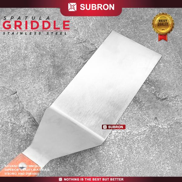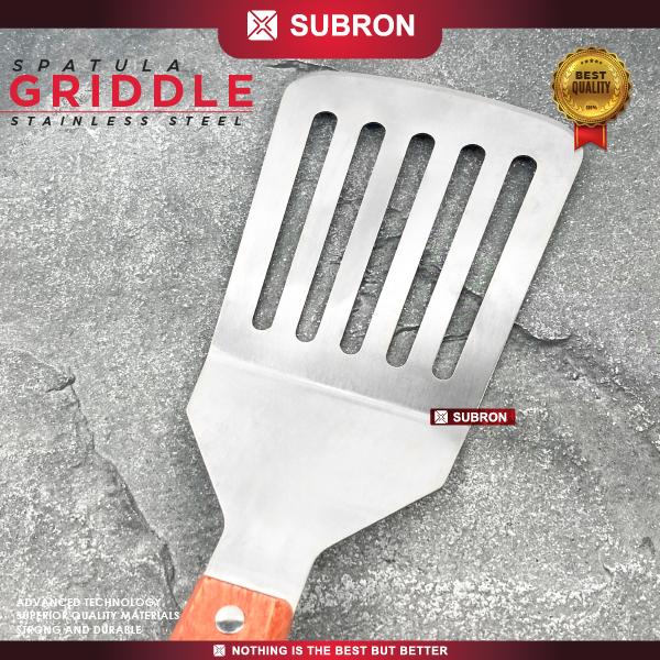 Promo SUBRON Spatula Griddle Lubang Non Lubang Panggang Roti Steak Ukuran Besar Stainless Handle Kayu - LUBANG Keren