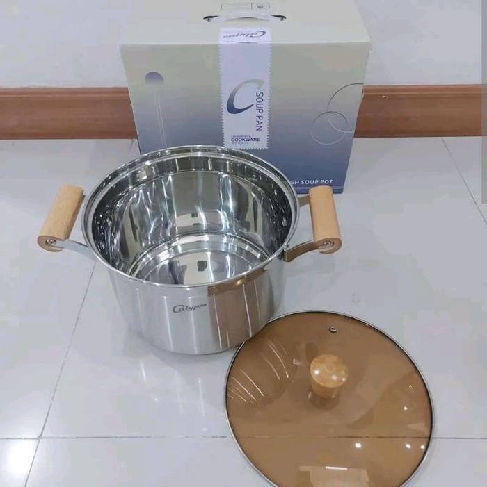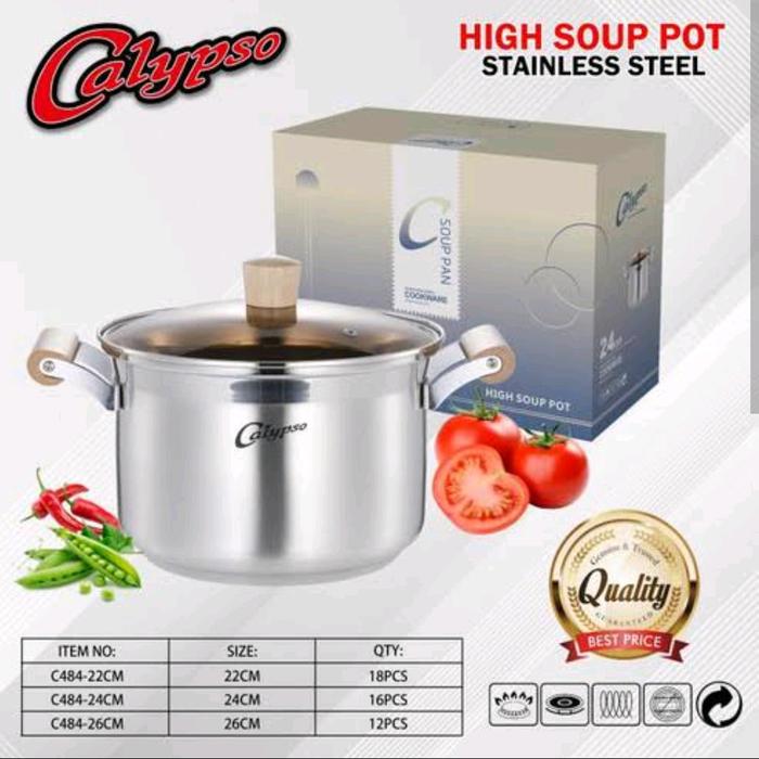 Murah panci calypso 22cm high quality soup pot stainless steel tutup kaca tebal - - - Keren