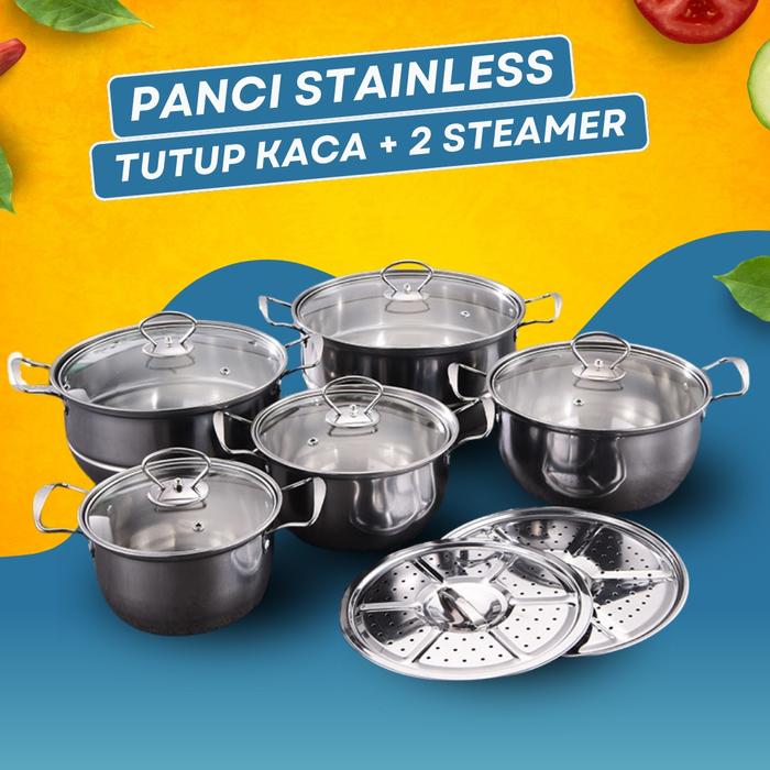Murah Panci Kukus 1 Set Isi 5 Pcs High Pot soup Steamer Kukus Stainless Stell - Highpot Elegan