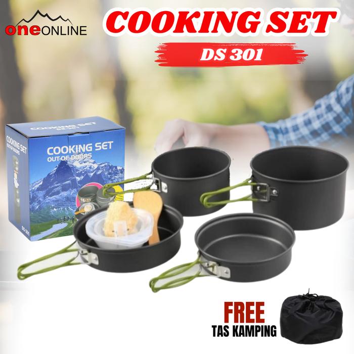 Promo Paket Alat Masak Panci wajan Nesting isi 4 Panci Kemping Gunung / Cooking Set DS301 Camping Outdoor - SY301 Keren