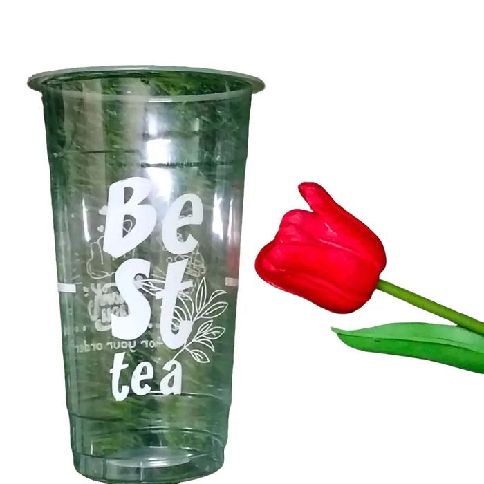 Promo Gelas Cup Plastik Sablon Logo Custom 22 Oz/ 1000 Pcs - 22 oz datar 1000pcs Elegan