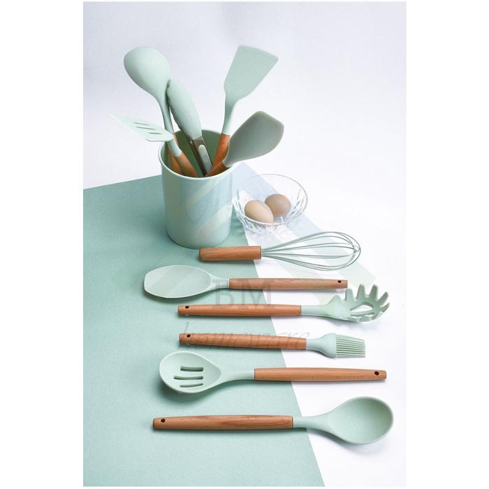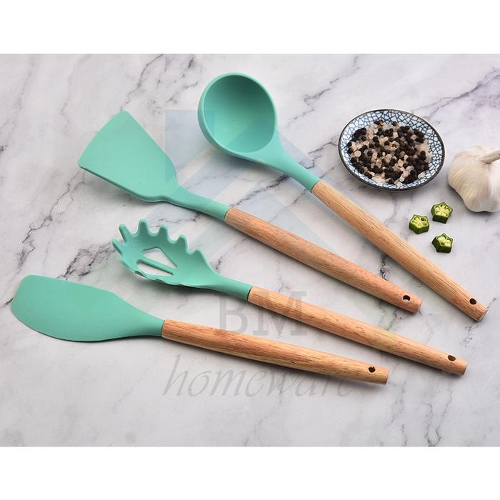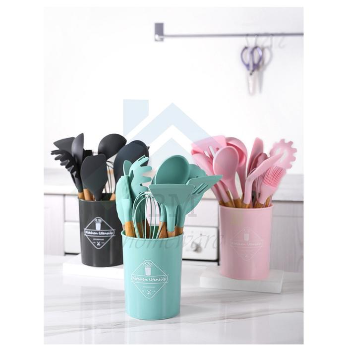 Murah Silikon Spatula Set 12Pcs Peralatan Masak / Alat Cooking 12 in 1 Silicon - Hitam Elegan