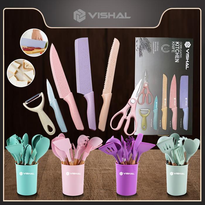 Terlaris VISHAL Pisau makaroni+Set Spatula Silicone 12in1 - Hitam+Pisau Elegan