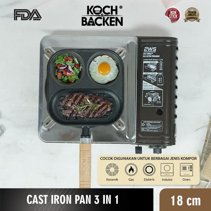 Promo KOCH&BACKEN Cast Iron Pan 3 in 1 - Panci Besi Cor Anti Lengket - Premium Handle Elegan