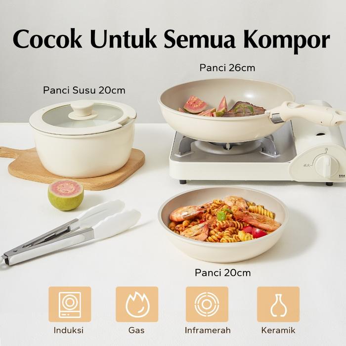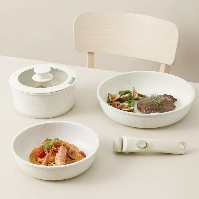 Murah Panci set 5 pcs anti lengket gagang yang bisa dilepas lapisan granit mudah dibersihkan - Set 5 pcs Keren