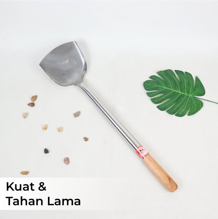 Promo Set Spatula Sutil JUMBO Kayu tebal Stainless Steel / Spatula ukuran besar Kitchenware Penggorengan - 6047 Keren