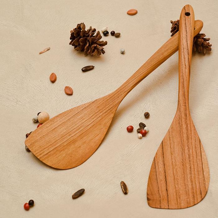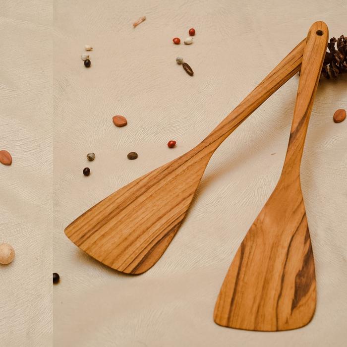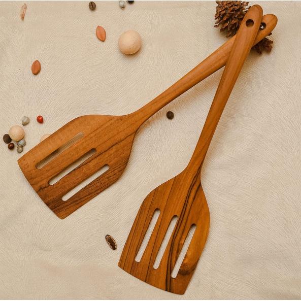 Terlaris Sutil 04 - Set Spatula kayu Jati Perhutani - TPK Grade A Kitchenware - Lubang Keren