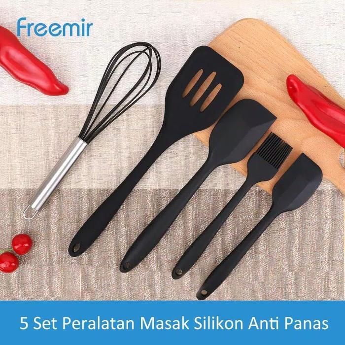 Promo Freemir set spatula peralatan masak sutil silikon non stick cooking - Hitam Elegan