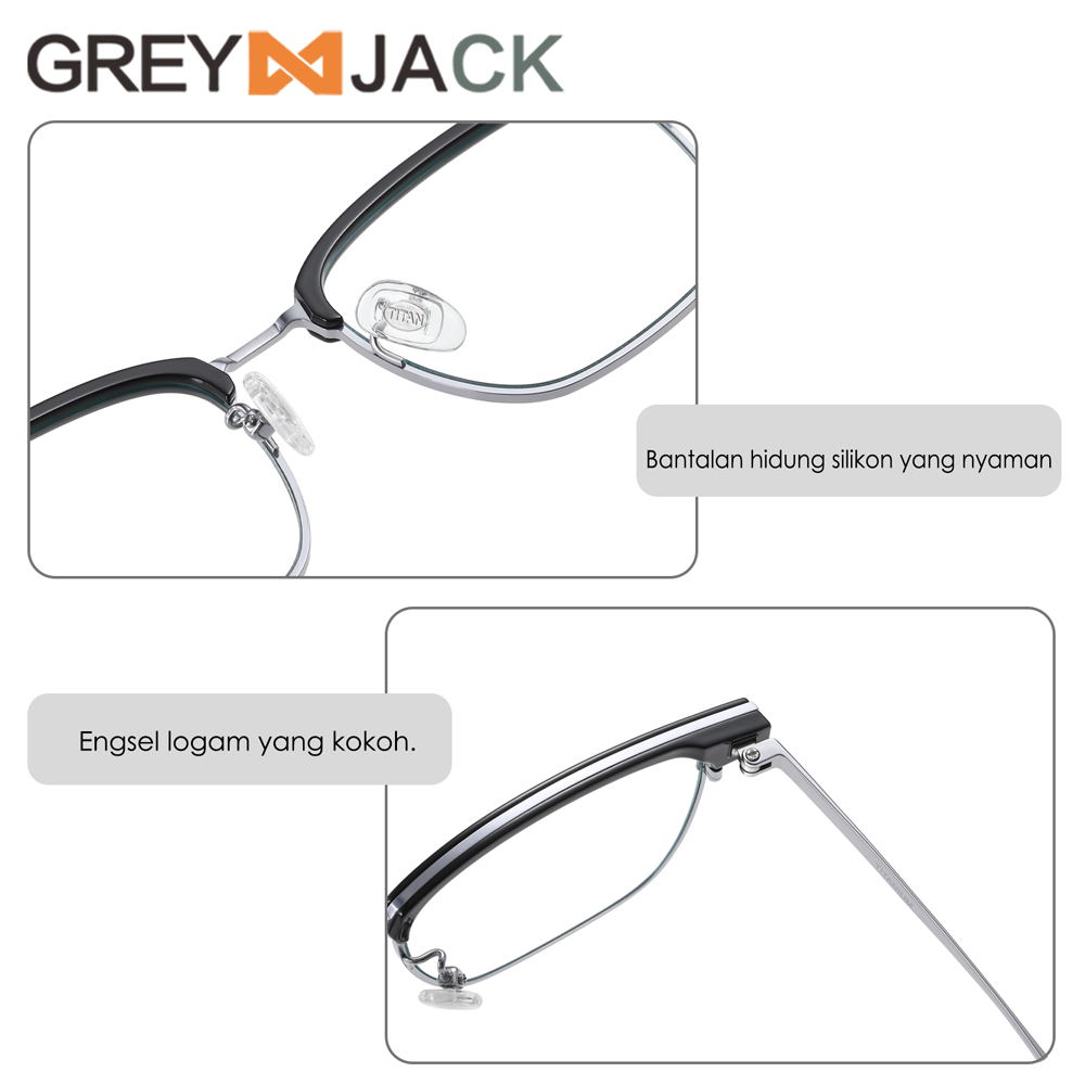 Grey Jack Frame Kacamata Titanium Ringan Bentuk Kotak Fashion Pria Wanita Bisa Minus Antiradiasi Blueray Photocromic Bluecromic 6203