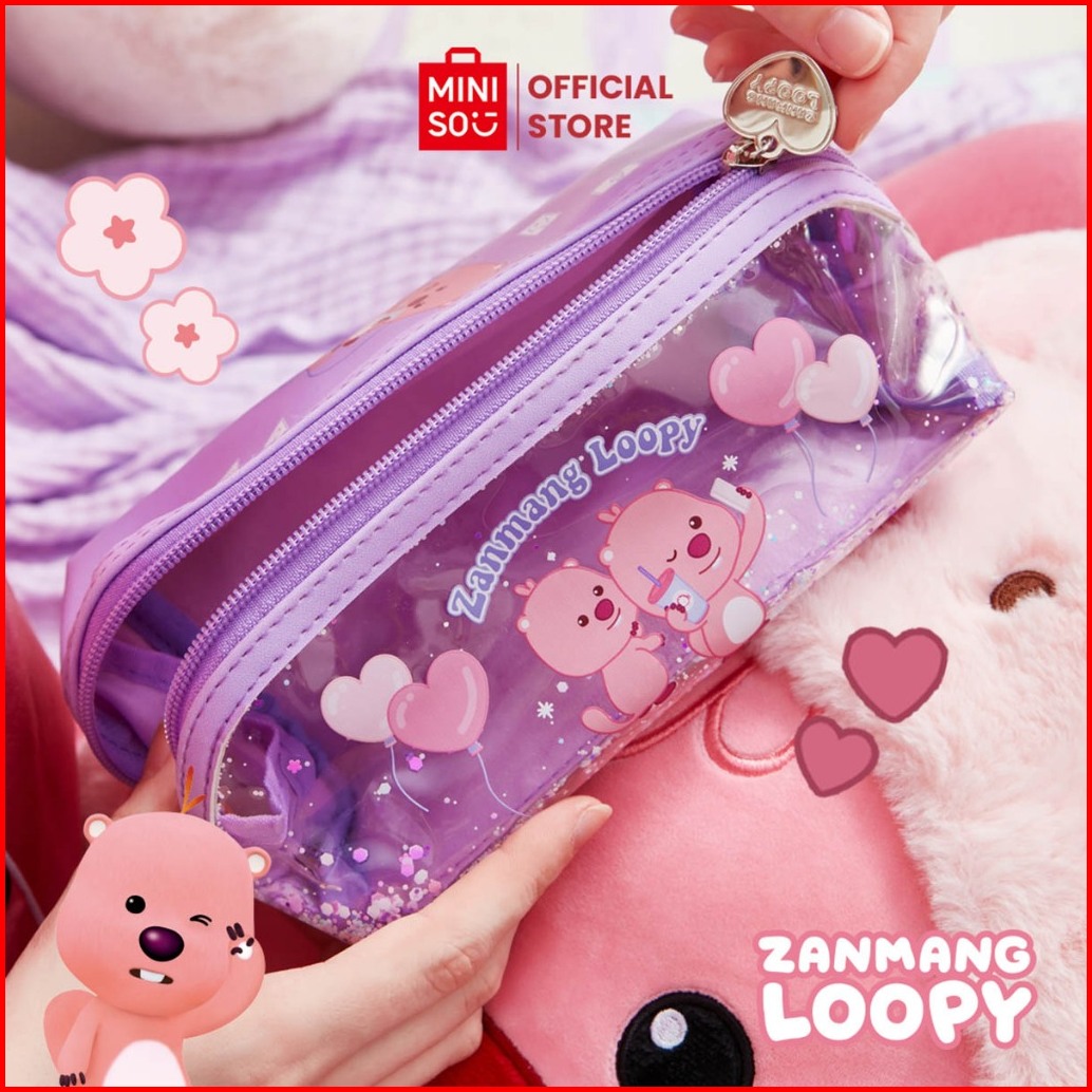 Miniso X Zanmang Loopy Collection Tas Kosmetik Dengan Pegangan Desain Transparan Cosmetic Bag Tas Penyimpanan Perjalanan