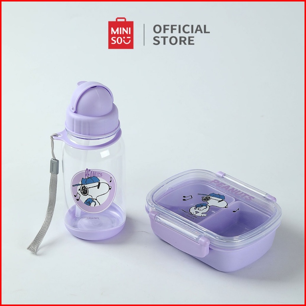 Miniso X Snoopy Collection Set Kotak Dan Botol Bento Kotak Makan Siang Kotak Kemasan Makanan Partisi Dua Lapis Lunch Box