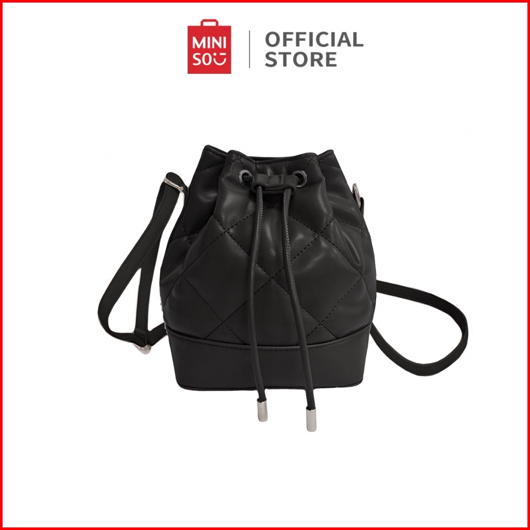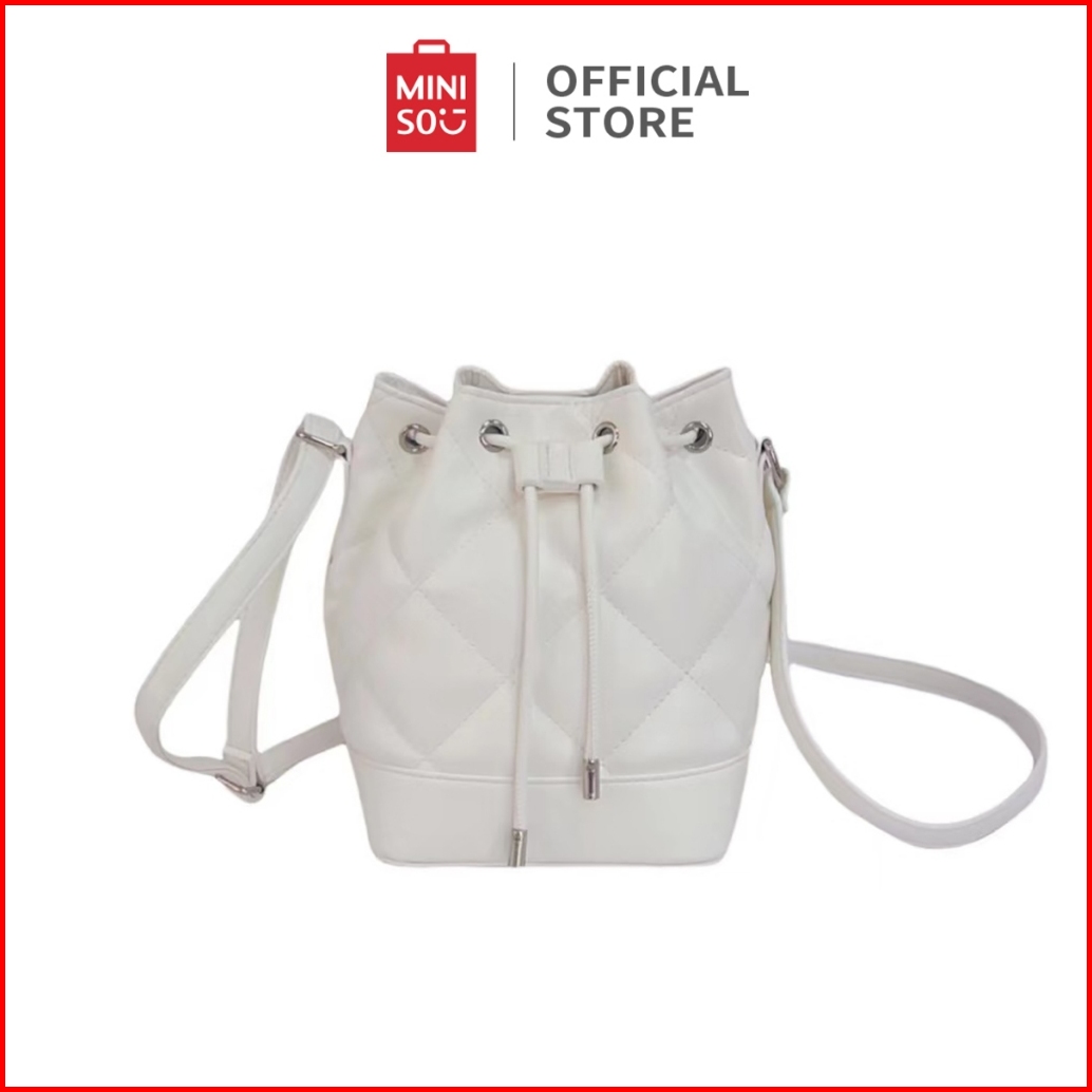 Miniso Drawstring Crossbody Bag Women S Handbag Tas Wanita Trendy Embroidered Quilted Drawstring Bucket Bag