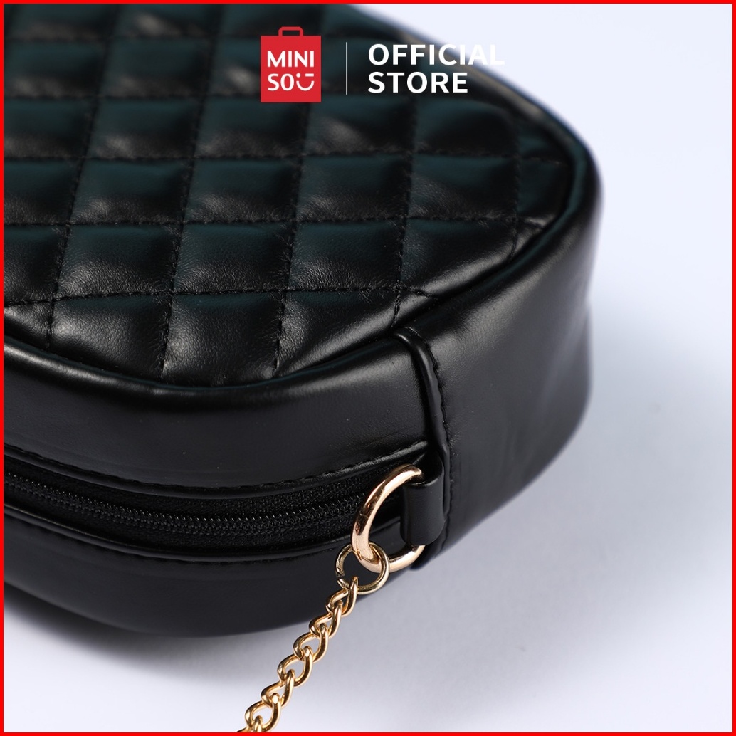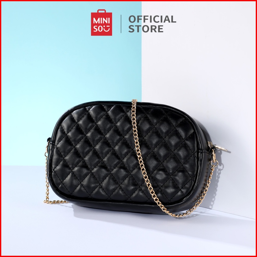 Miniso Tas Selempang Crossbody Bag Tas Wanita Hitam Dengan Rantai Pola Kisi Berlian Berlapis Pu Kain Lembut Kapasitas Ti