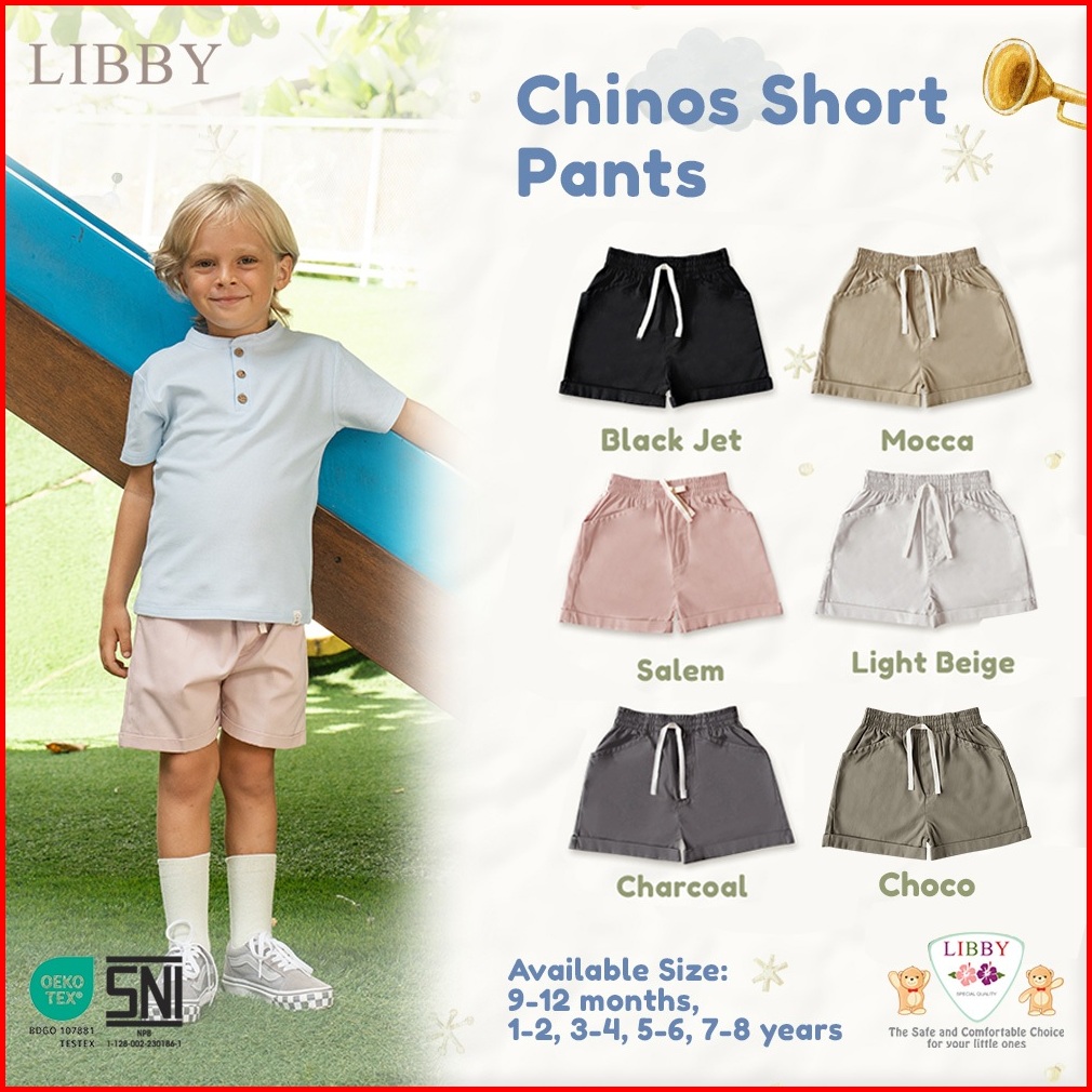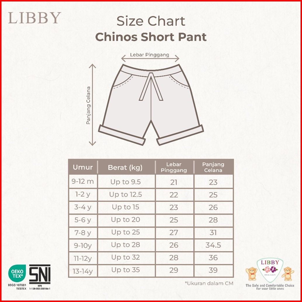 Libby Celana Chinos Anak Laki Laki Polos Pendek Usia 9 Bulan - 8 Tahun Earth 1pcs - Celana Chinos Pendek Anak