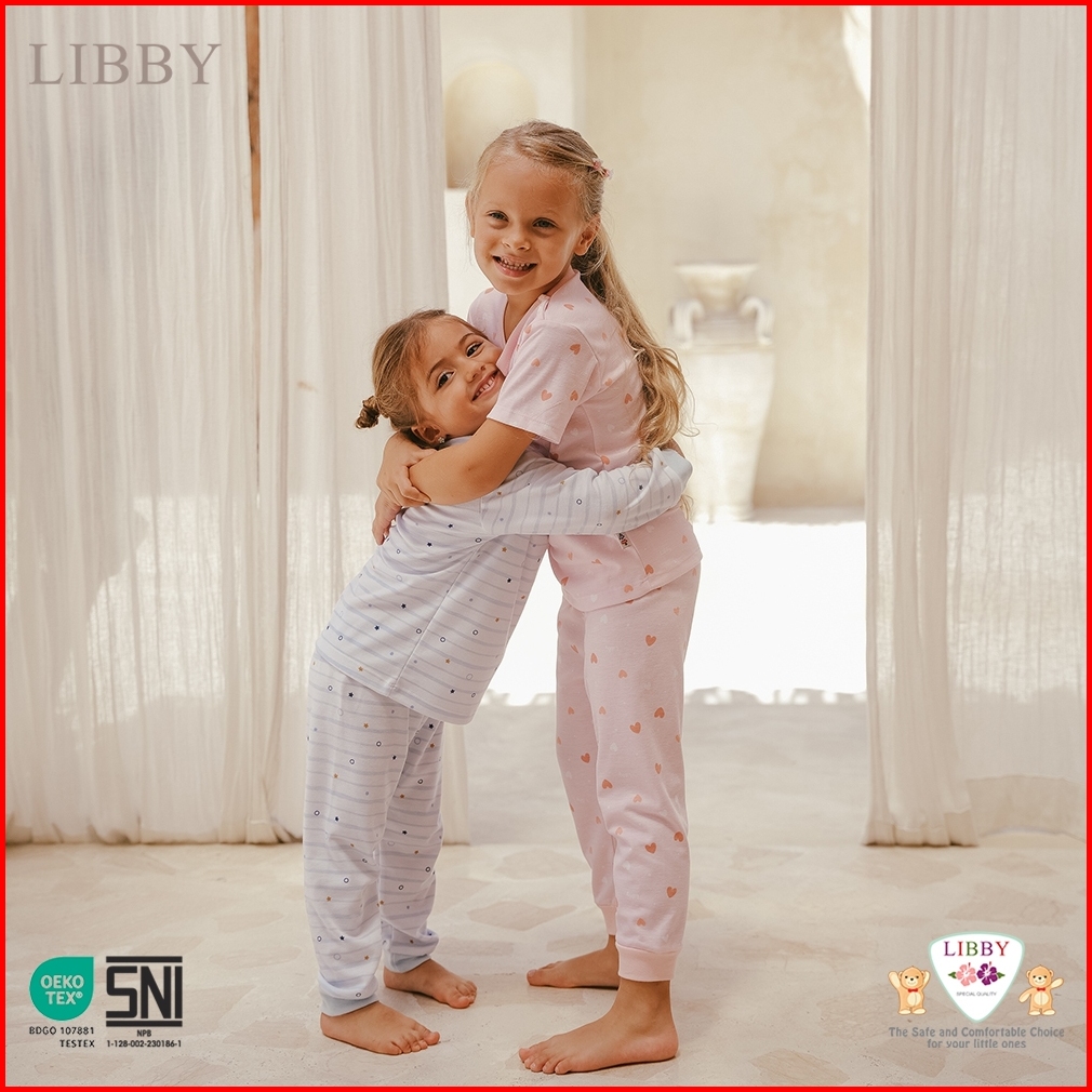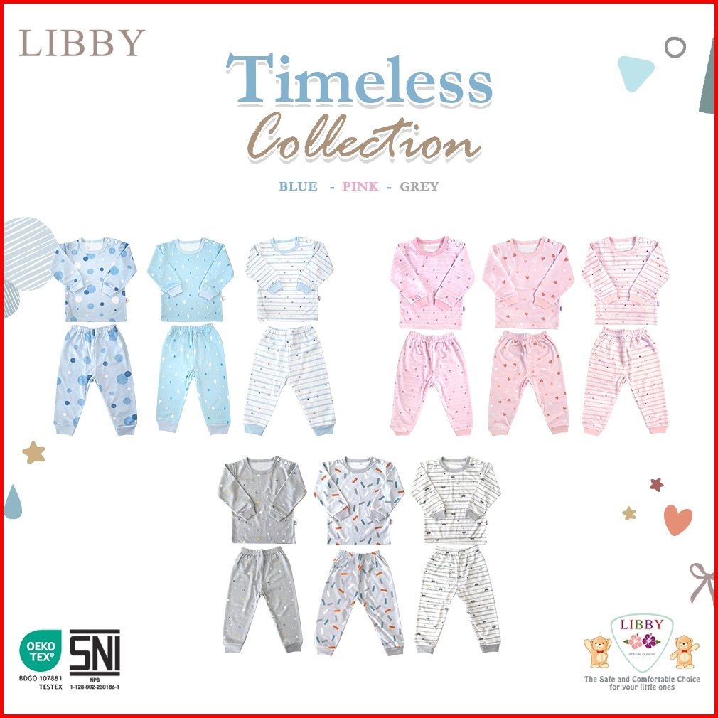 Libby Setelan Piyama Oblong Panjang Anak Laki - Laki Perempuan Motif Timeless Collection 1 Stel