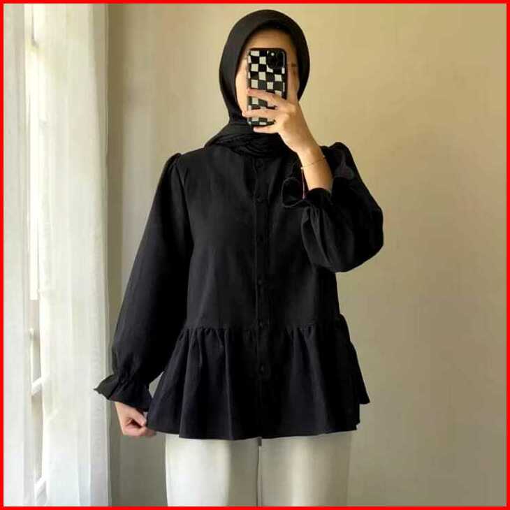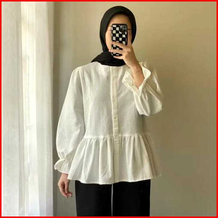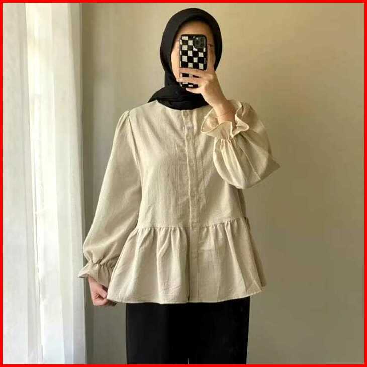 Lolly Ruffle Kemeja Shirt Oversize Linen Atasan Wanita Terbaru Kemeja Blouse Wanita Kekinian