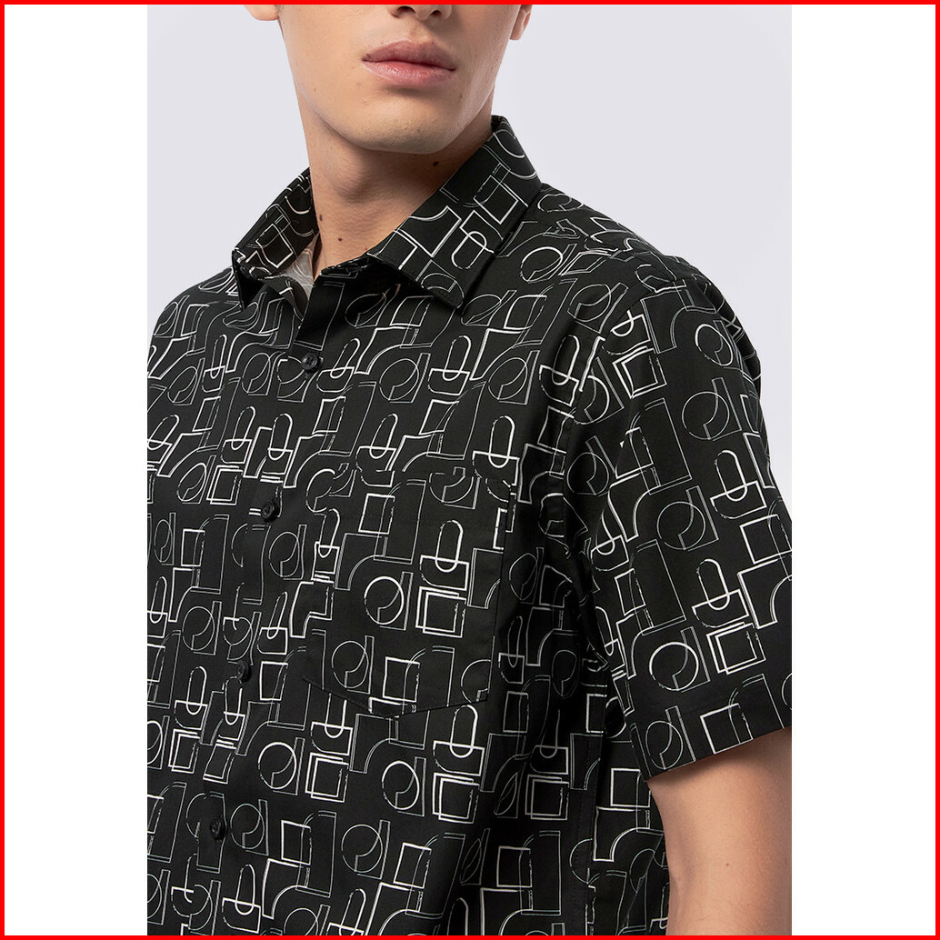 Executive Regular Fit Printed Short Sleeve Shirt Black