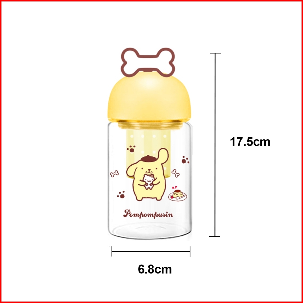 Miniso X Sanrio Tumbler Glass With Tea Separator 330ml Pompompurin Melody Cinnamoroll Botol Minum High Boron Glass Bottl