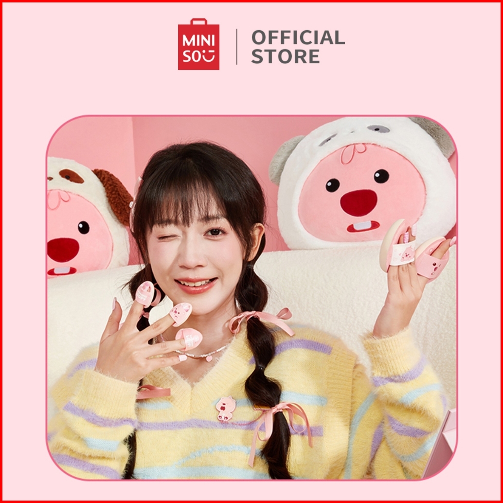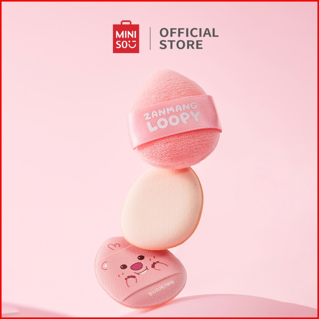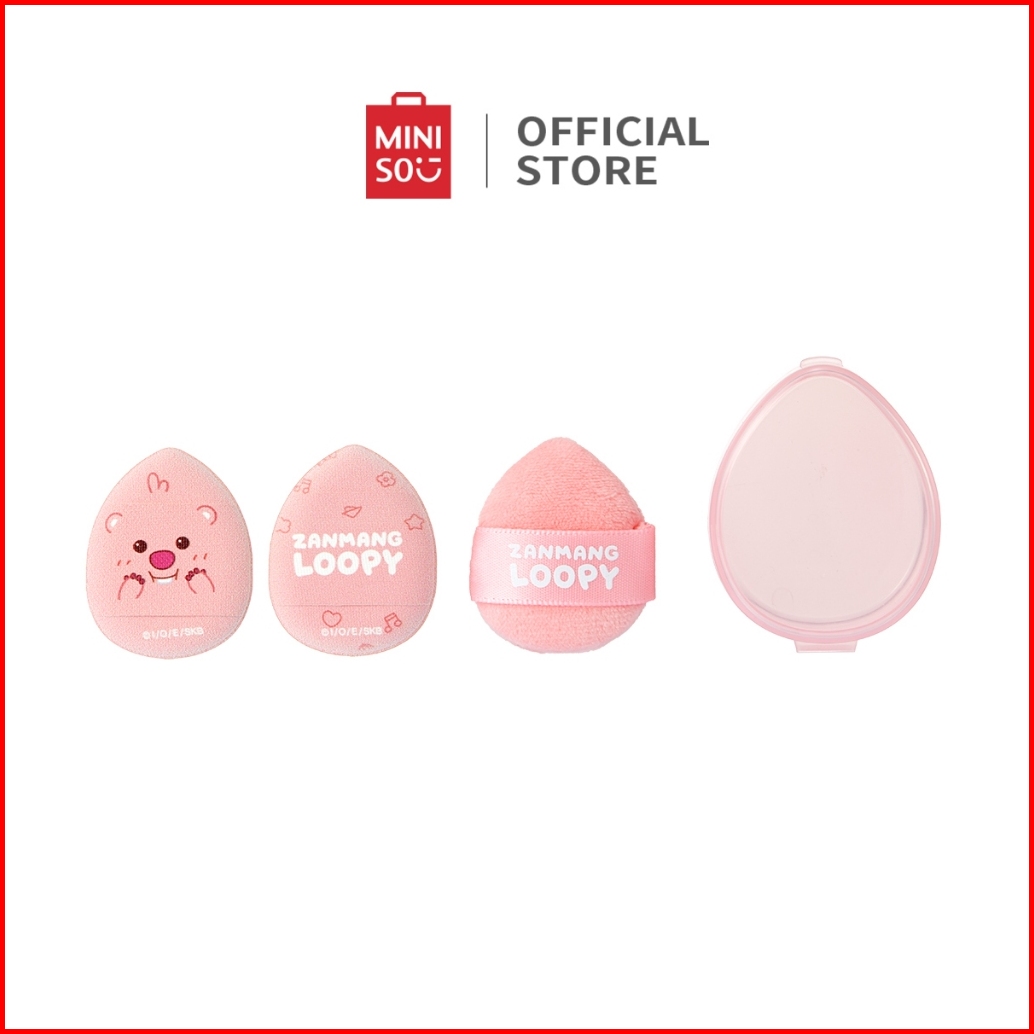 Miniso X Zanmang Loopy Collection Makeup Puff Set Puff Rias Dengan Kotak Penyimpanan Kulit -yang Ramah Mudah Dibawa