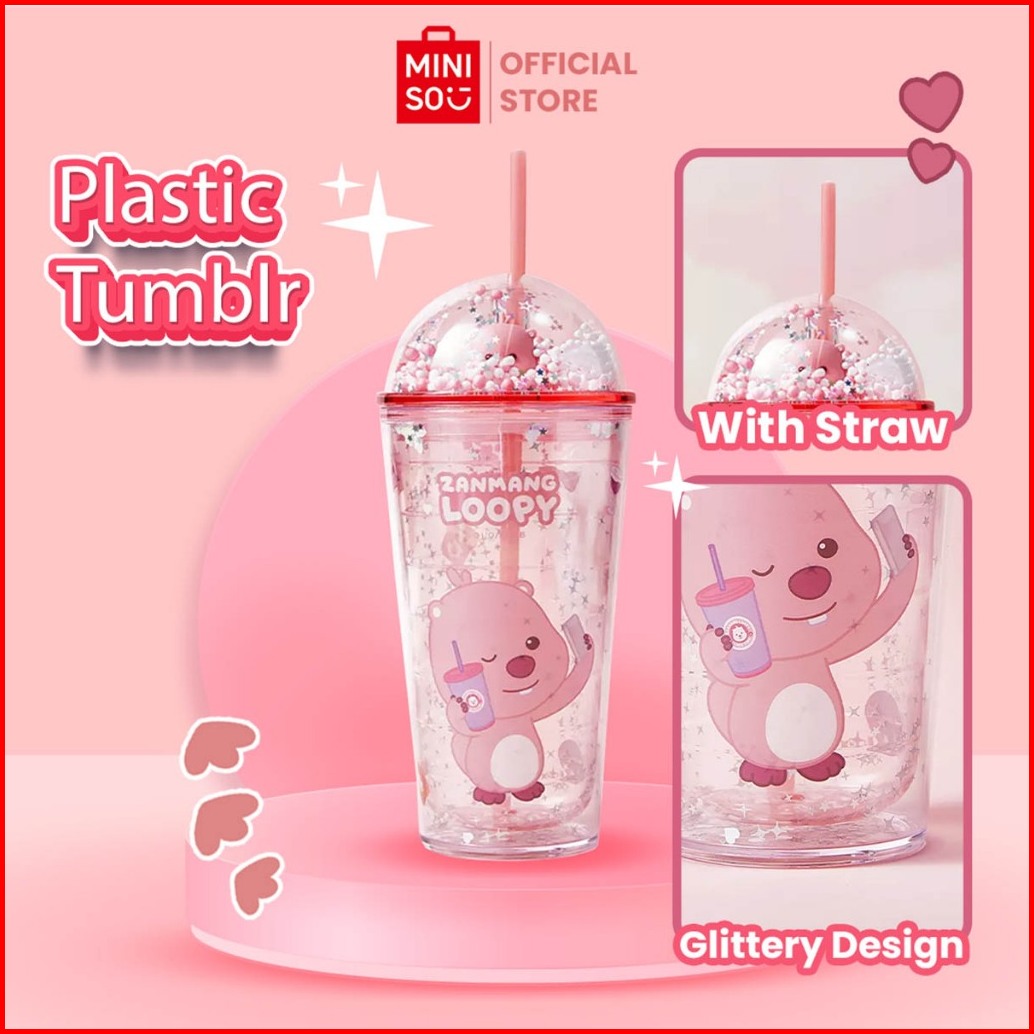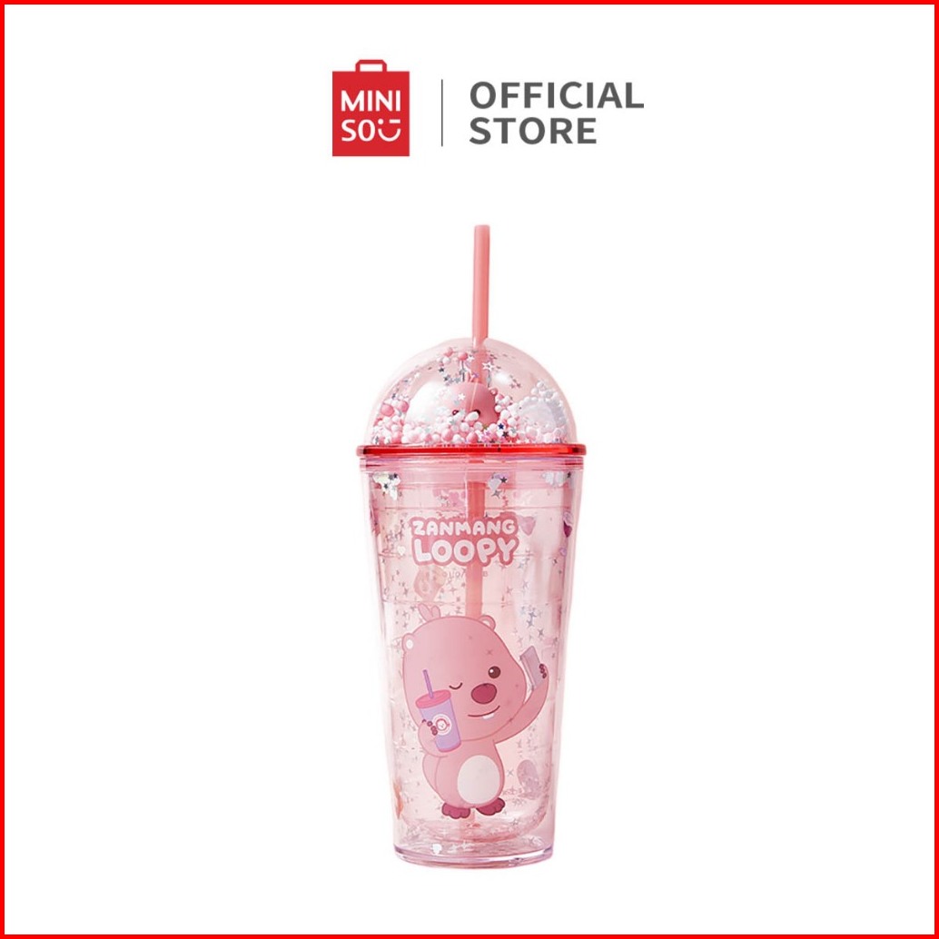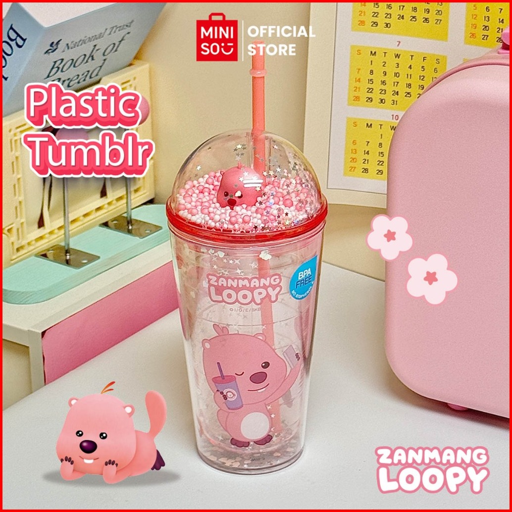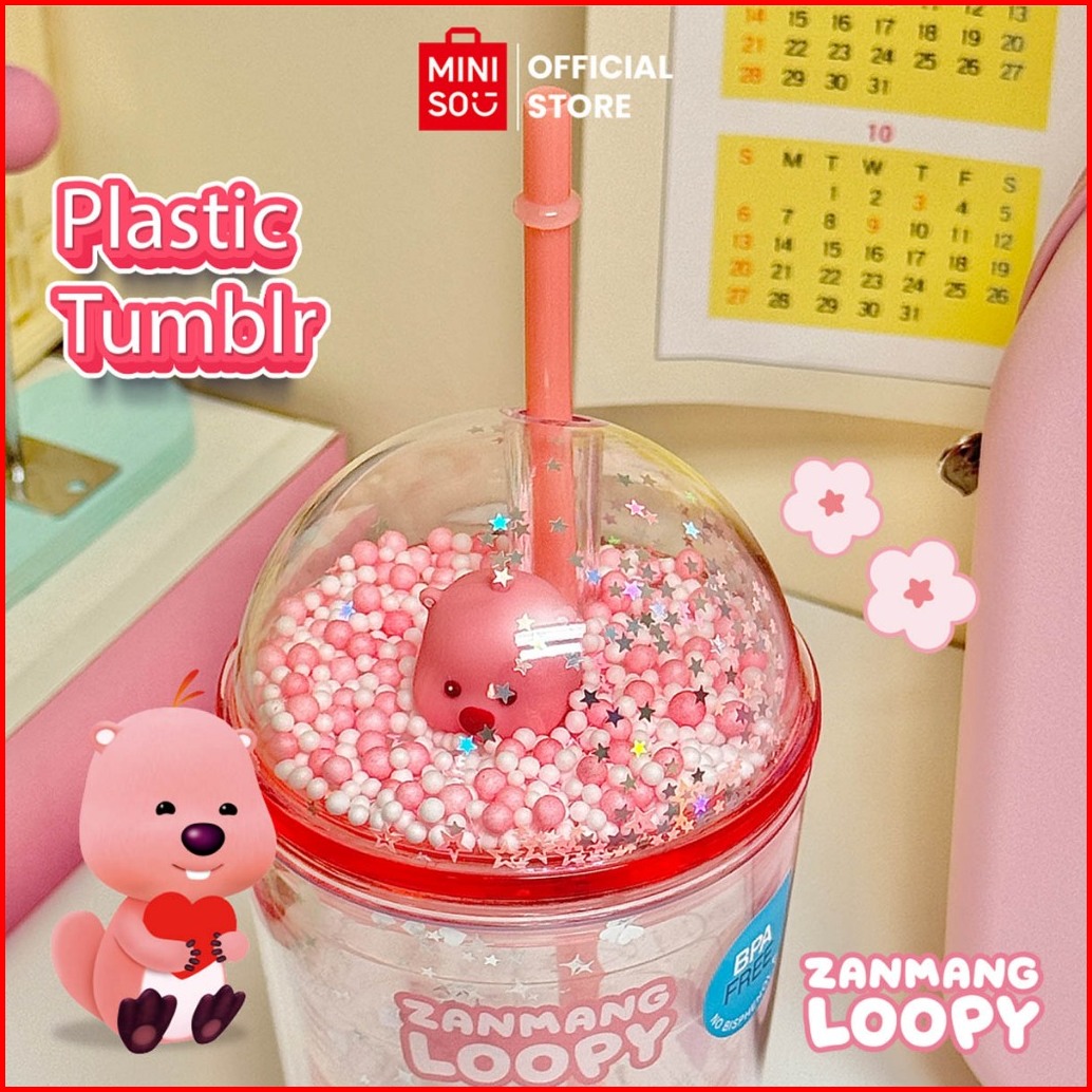 Miniso X Zanmang Loopy Collection Botol Dengan Jerami Plastic Bottle Bubble Cap With Straw Loopy Imut-imut Sippy Cup Can