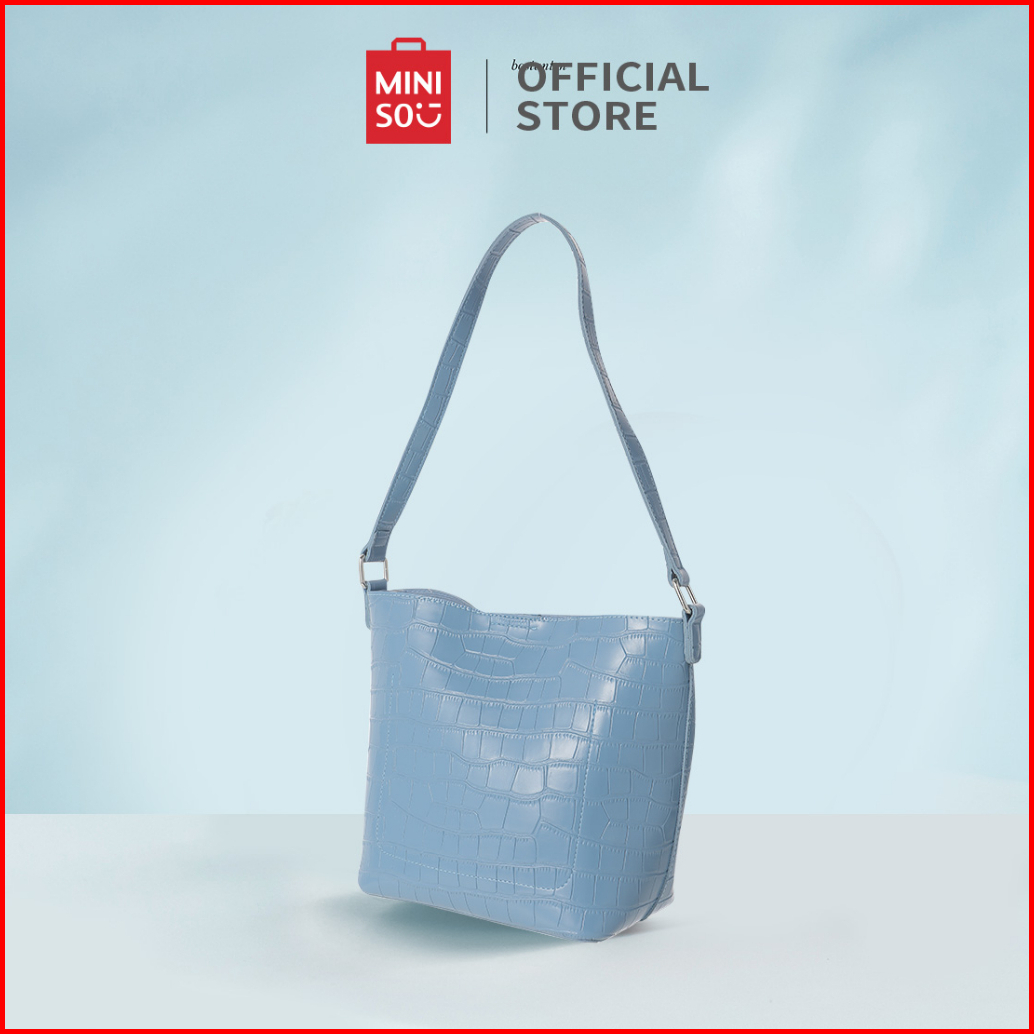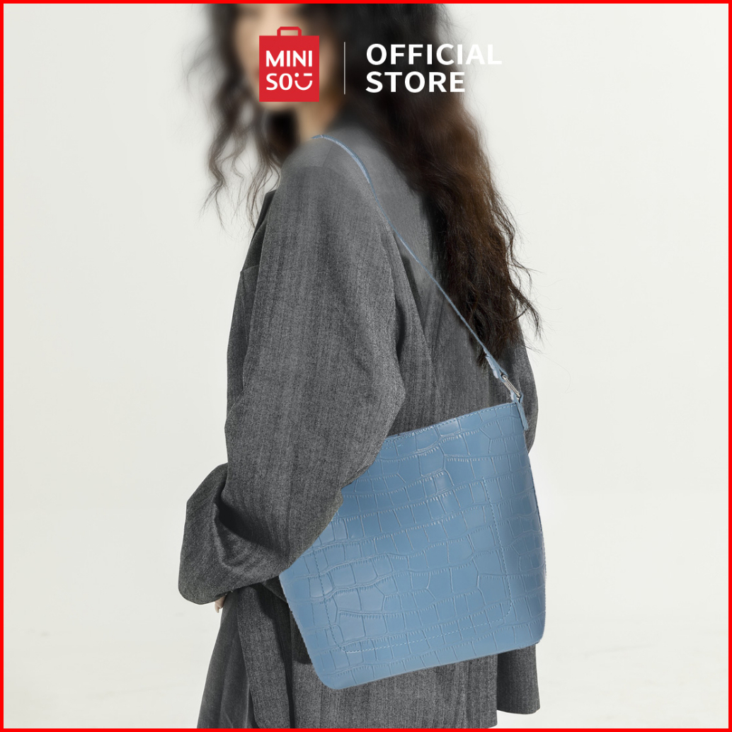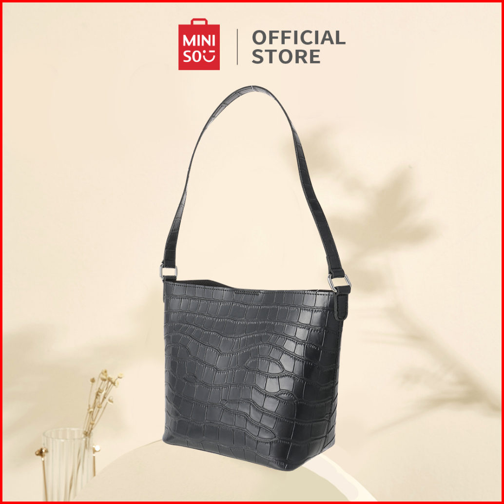 Miniso Tas Bahu Tas Tangan Wanita Shoulder Bag Cetak Buaya Mode Kapasitas Besar Tahan Air Pvc Penutupan Tombol Magnetik
