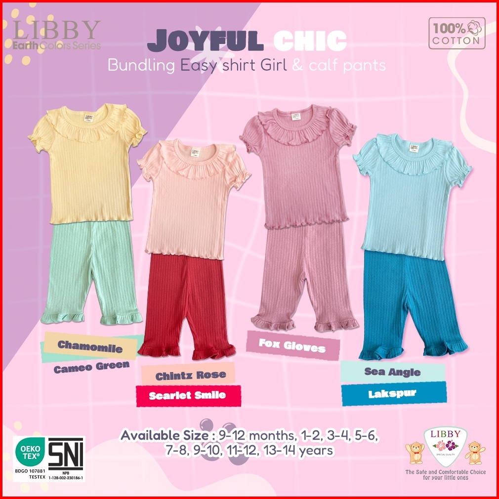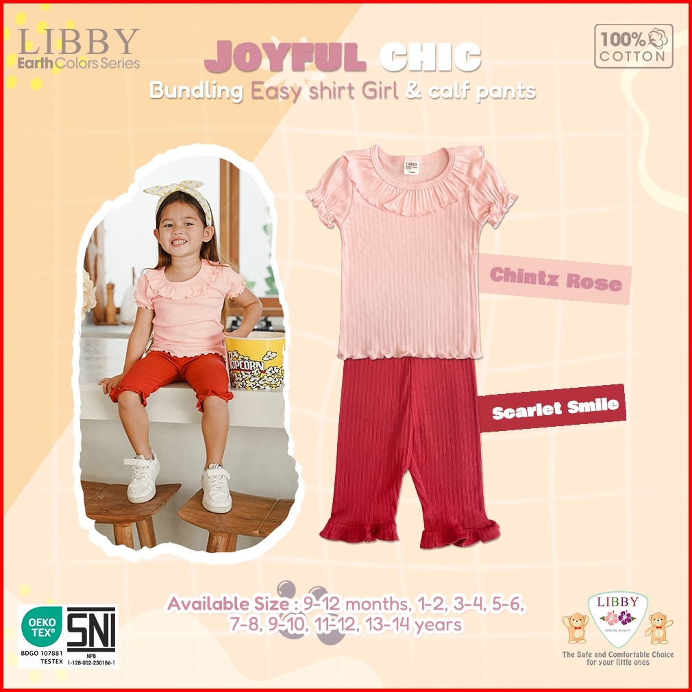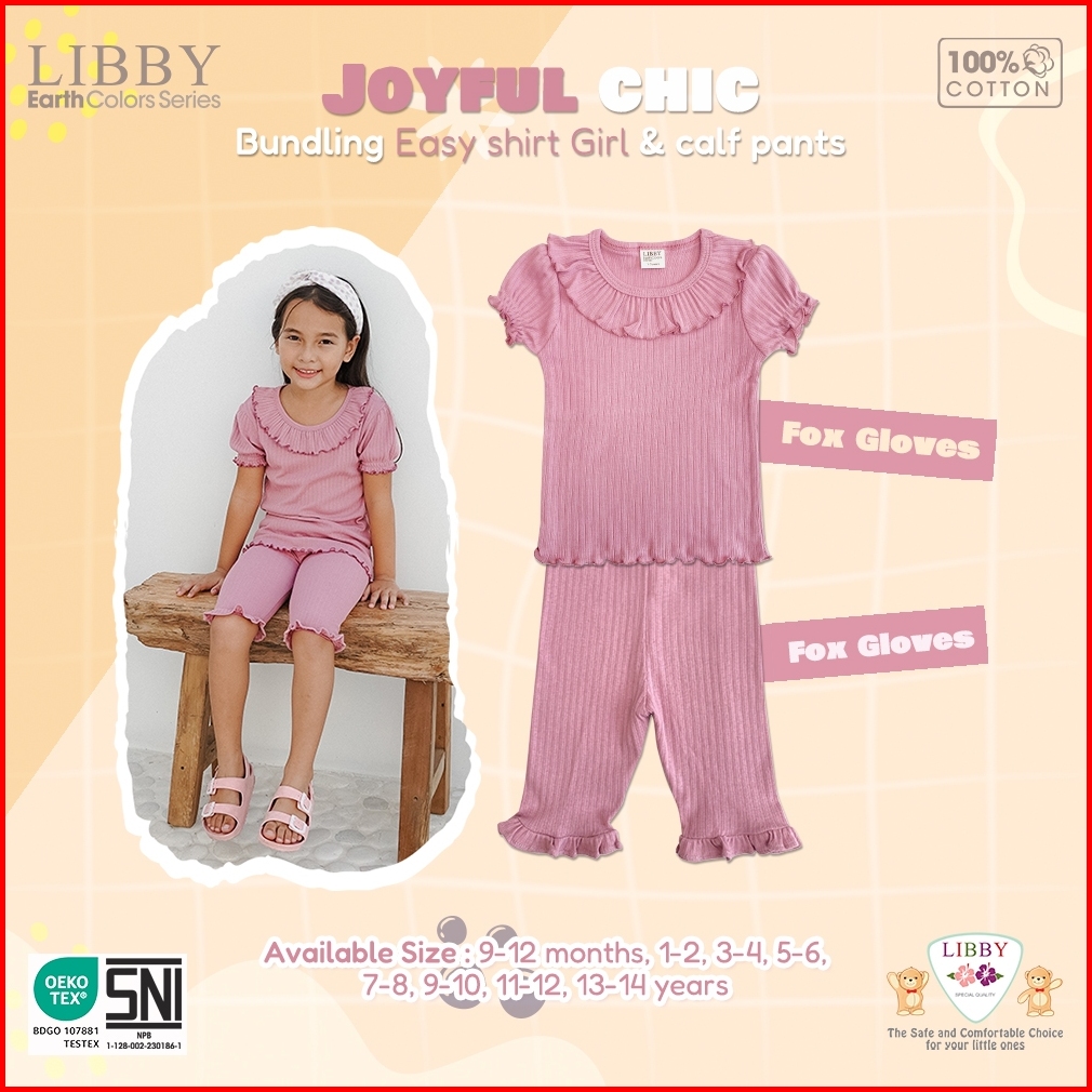 Libby Setelan Anak Perempuan Kaos Ruffle Anak Perempuan Celana Legging Pendek Perempuan Usia 9 - 14tahun Paket Hemat Set