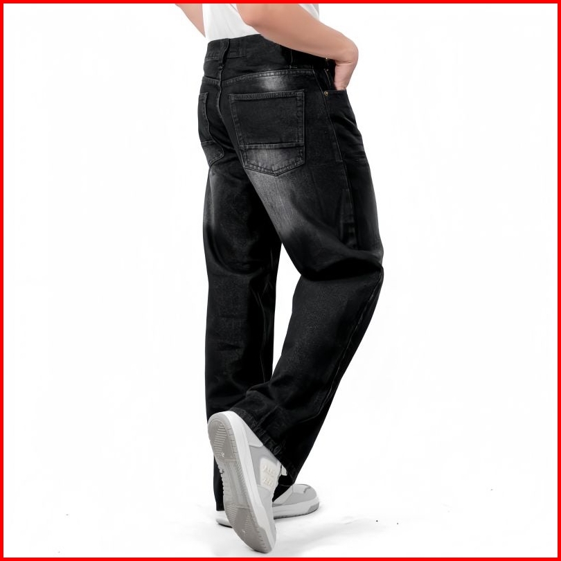 Ethena - Celana Jeans Wisker Pria Unisex Wide Leg Lebar Gombrong Skena Blacki