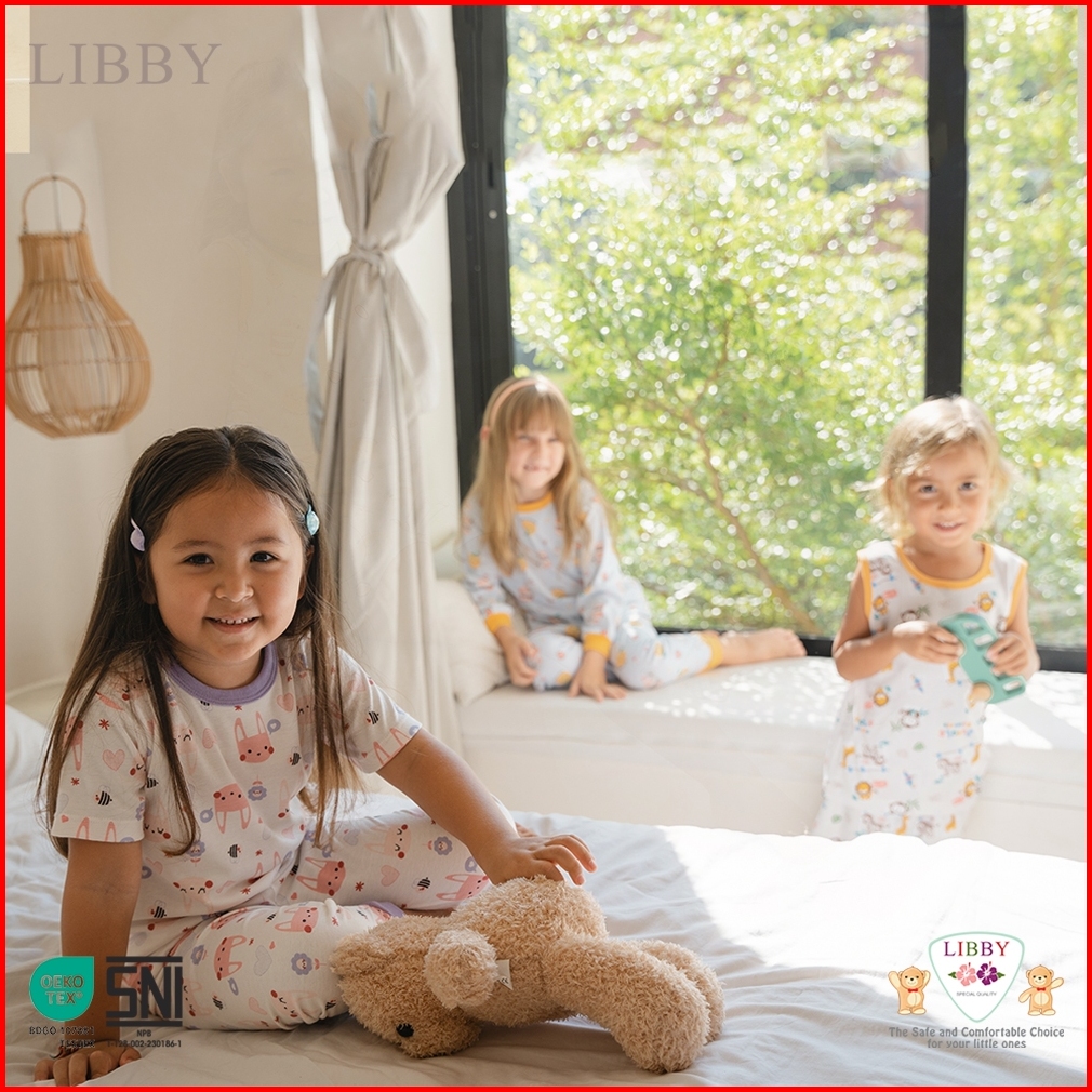 Libby Setelan Piyama Oblong Pendek Anak Laki Laki Perempuan Motif Unisex 1 Stel Forest Mingle Work Zone