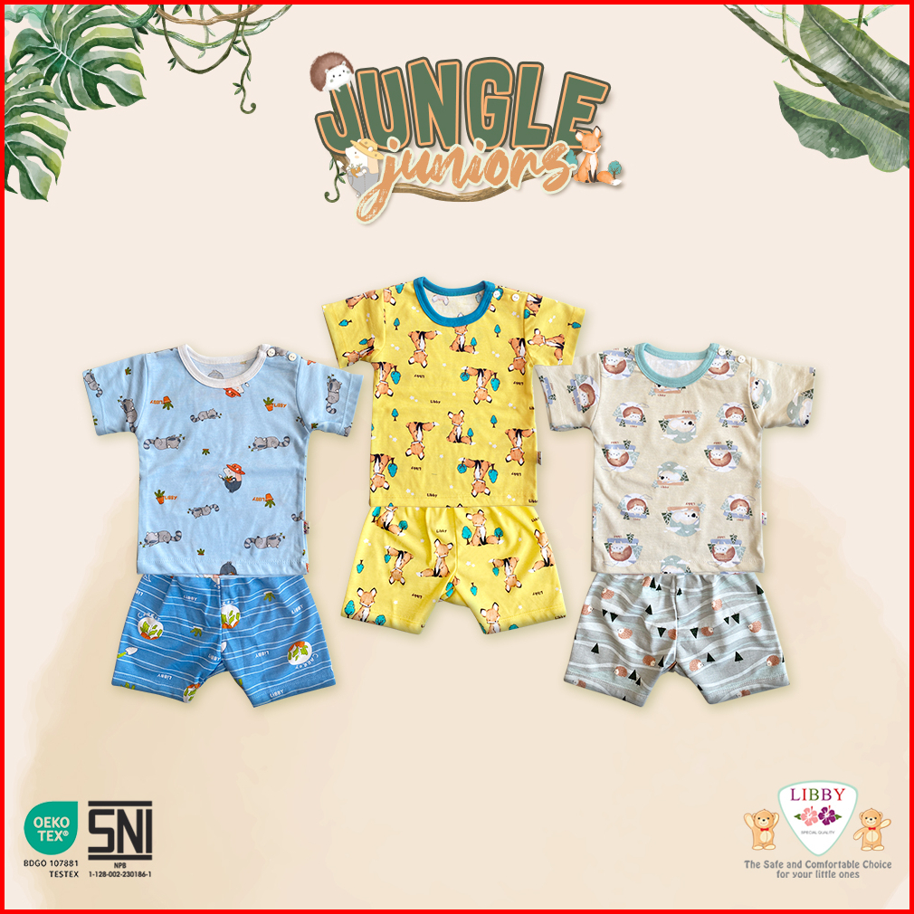 Libby Setelan Oblong Pendek Motif Unisex 1 Stel Jungle Juniors Camp Venture Playtime Stories Glowy Pals